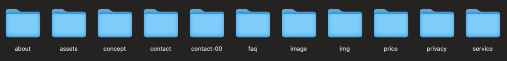 - 会社概要用のフォルダに、トップページの index.html ファイルをアップロード。