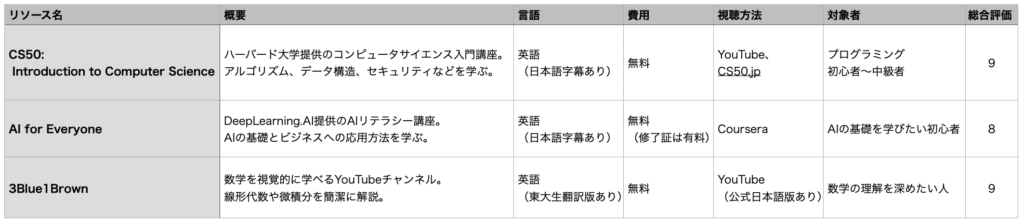これらのリソースは、無料で質の高いAI教育を提供しています。高額な講座を検討する前に、これらを活用すると良さそうです。