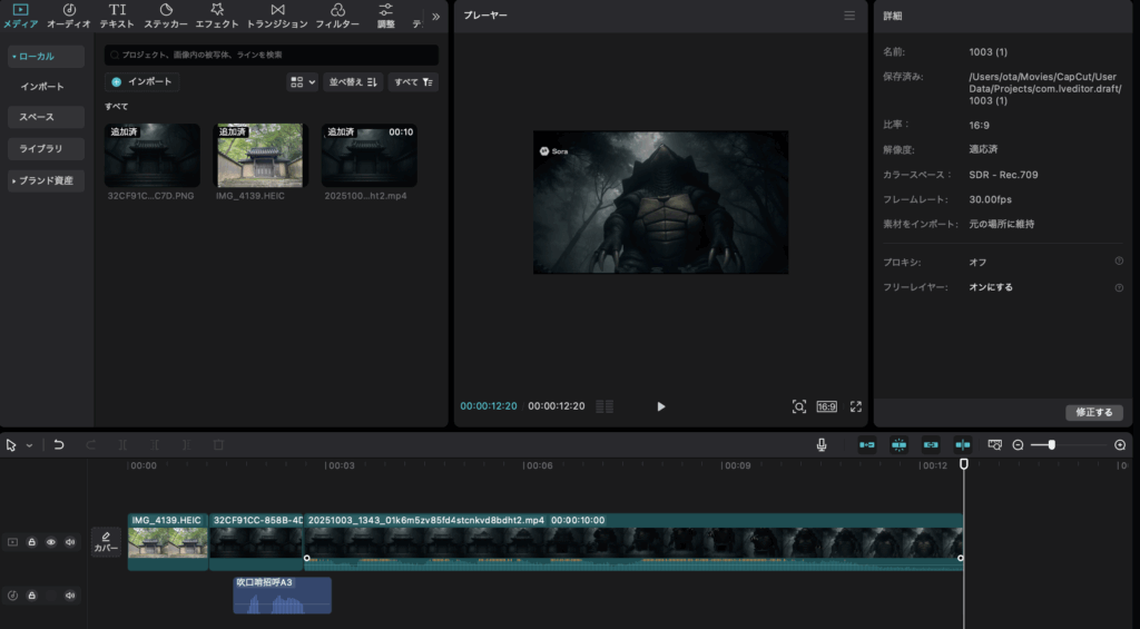 なんてことない写真とChatGPTとSoraで動画作成 ブログ 2025.10.02 スマホにある写真とChatGPTとSora2。そしてCapCutがあればこんな感じのことができます。 どこかよくわからない.. ChatGPTに「荘厳にして」と ChatGPTが動画作成 Capcutで全部くっつけてしまう。 こういった簡単なディレクションができると幅が広がります。 4つの動画を貼り付け 2つの動画を貼り付け 声優の声が使われることもあるようです。 Sora 2 は“視覚+聴覚の世界モデル”に近づいた試作機と考えます。AIは今後、言語能力から視覚や聴覚へとそのステージを拡張する段階となるようです。 Post Views: 44