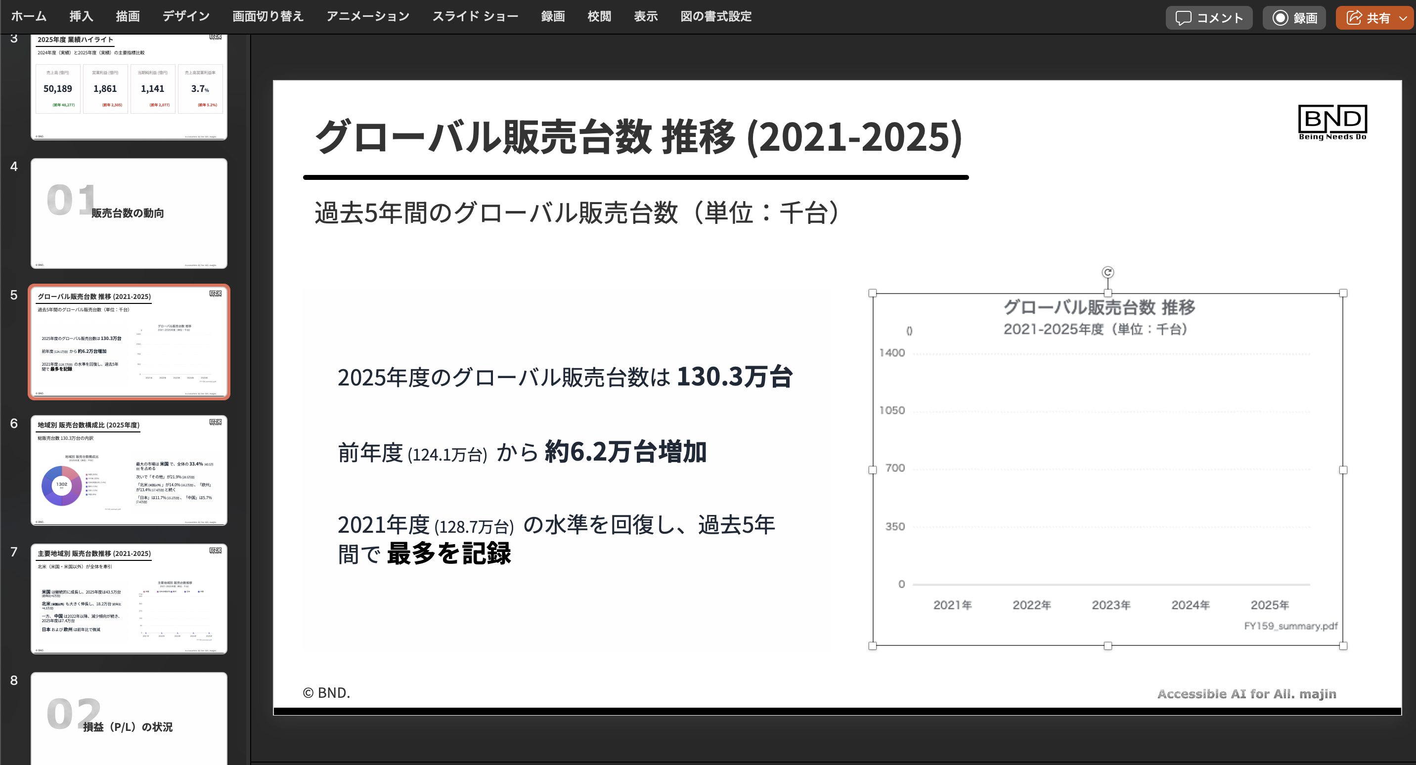 おそらく、単年度のPL・BSだけ(推移や比較が弱い)、テキスト説明が中心で、表はメモ的、数字はあるけど「どこをグラフ化すべきか曖昧」なものは生成されません。癖を把握して上手に使うべきすばらしいツールだと思います。