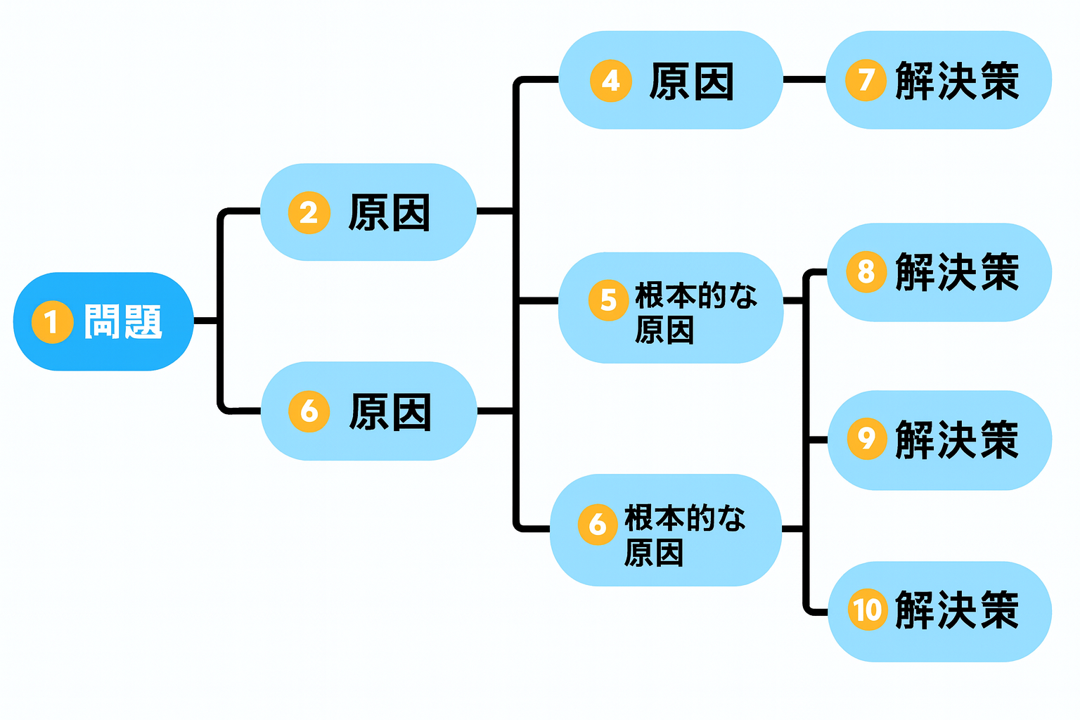 ロジックツリーは、「大きな問題を枝分かれさせて“要因を徹底的に分解する図”」です。