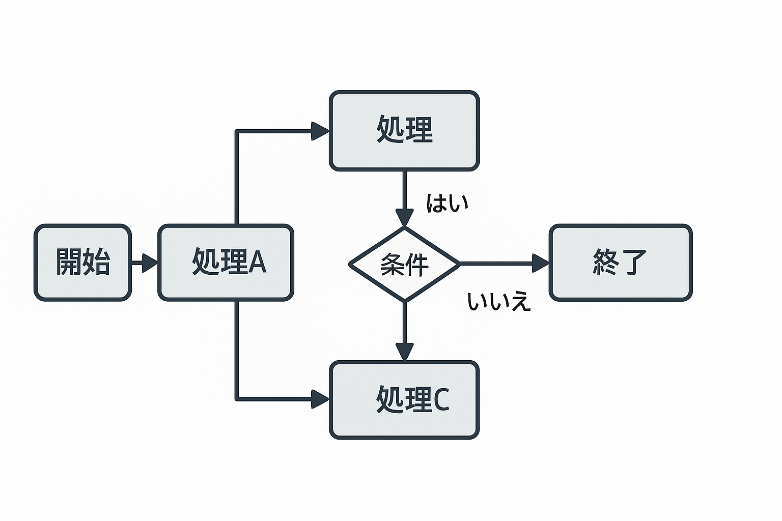 「四角いノード(箱)と矢印で“流れ”や“仕組み”を可視化する図」です。