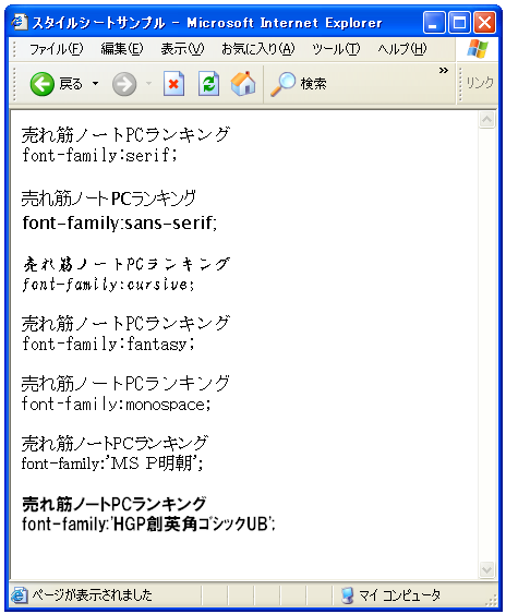 fontの場合は、「メイリオ, Meiryo, Osaka, “ヒラギノ角ゴ Pro W3”, “Hiragino Kaku Gothic Pro”, “MS PGothic”, sans-serif」