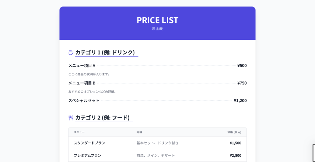 Gemini Proは厳しい。デザインはGoogleフォームのような印象で、相変わらずダサい。さらに、肝心のメニュー文字が全く読めていない。体裁だけ整えたように見えるが、今回の目的である「メニュー画像を読ませてサイトに反映させる」という点では話にならない、という評価になる。