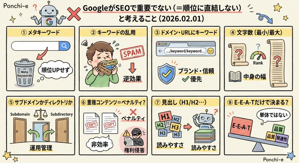 Googleが重要でない(=順位に直結しない)と考えること」9点を、要点だけ外さずに噛み砕いた整理