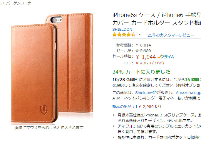 例えば、70%オフのタイムセールとうたわれている此方の商品。評価も高い商品が、今だけ70off、あと1時間で終了などと歌われると購買意欲は、高まってしまいます。