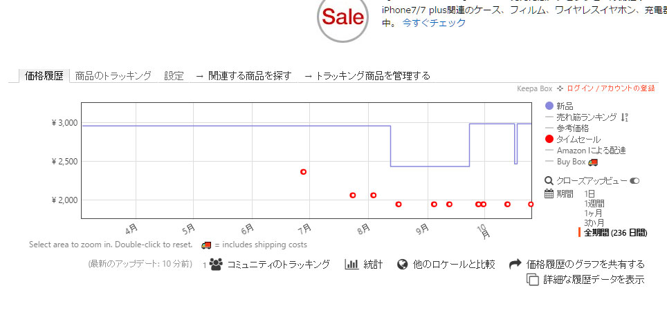 ところが、これでみると、6000円で売られていたことはありません。通常、2980円で売られていることが分かり、しょっちゅうセールになっていることがわかります。