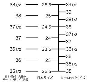 日本では5mmごとにサイズが設定されていますが、ヨーロッパの靴は約3.3mm(または6.6mmで)サイズが変わります。36と36 1/2の差は約3.3mm、36と37の差は約6.6mm。