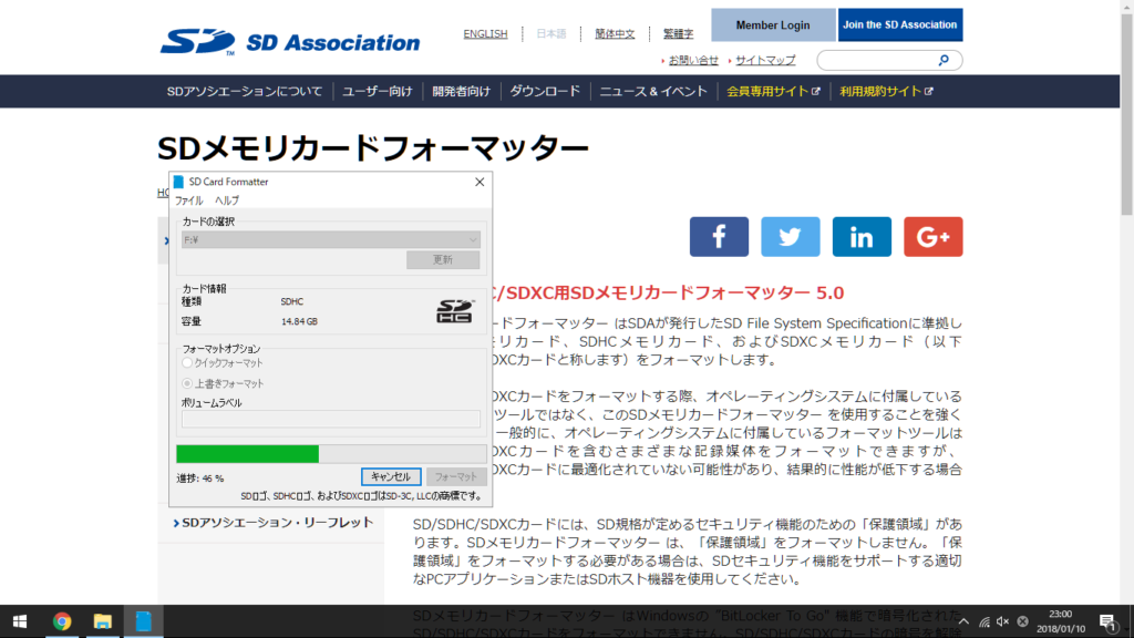今回、クイックフォーマットを2回繰り返してから「上書きフォーマット」すると作動しました。