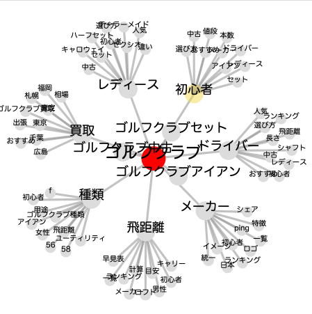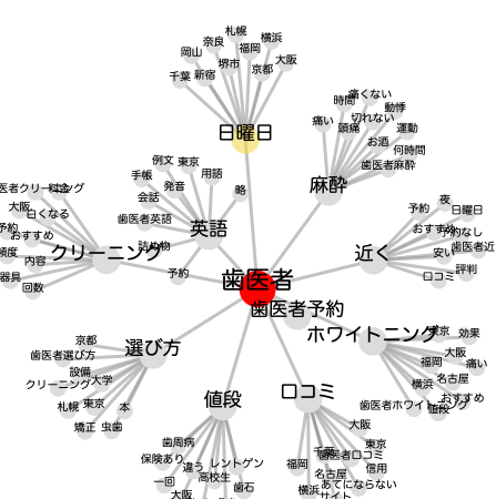 すぐに「どんな単語と共に検索されているか」がマッピングされて出てきます