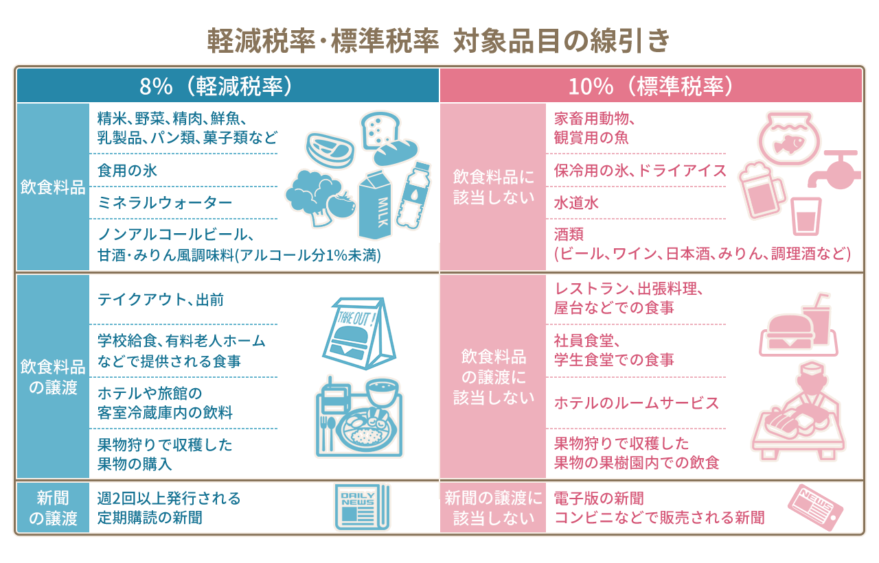 2019年10月1日から実施される予定の消費増税における経過措置です。 今回の消費増税ではほとんどの商品の消費税率を10%に引き上げますが、飲食料品や新聞は例外的に8%に据え置きます。