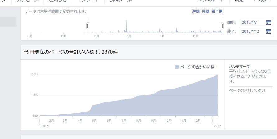 こちらのデータは、コツコツ運営されていたfacebookページの「いいね!」の数です。
